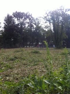 9-28-14, Sunday, the next morning, I had a chance to talk to NaQuita again, the young woman from Wiley who’d gotten her fellow students together last April, when Ysaye Barnwell was here. NaQuita shepherded half a dozen of her fellow students out the road to Love and surprised us. There’d been a mixup on timing and we’d thought we’d missed them but they were not about to get left out. Just before choir practice on the 28th, NaQuita and I talked by phone so that I could hear more about this fall cleanup and what it meant to her. “Finding our way to Love in the spring was humbling. It pushed me to want to share this kind of experience with more of the Wiley students this fall. “You can see a thousand movies, but they can’t give you the actual experience. Walking the road to Love, we thought about how things were for our ancestors, what conditions they lived with. They didn’t have good shoes like we do. For them, if their feet hurt while they were walking, there was nothing they could do about that. I started up a song as we walked and before we knew it, we were at Love. We got busy, picked up a tool and started to work, clearing the graves. What if working in the fields was all you could do, everyday, in the heat? Think about that. A lot of people had no choice. Singing took your mind off your work. Imagine what those songs did for our people. It became a really great experience, a great bonding time with other Wiley students, with ETBU, and the Scouts. It showed unity, coming together, and what can be done when everybody joins in and helps. One of the ETBU students — Elizabeth — a white student, joined in as we were working and singing ‘Down by the Riverside.’ Racism still exists in our society, but then and there, it disappeared, color didn’t matter. Being out at that cemetery is so amazing. There was a shot gun barrel, a piece of a sewing machine leg left as grave markers. My mind was racing, wondering what happened during those times. It made me want to go find more of this history, grab other students, make flyers, let more people know about Love. We’re all coming back.” Love has taken on a life and an energy of its own. The process of making our documentary has helped seed a larger, inter-generational community. Reclaiming history, watering our roots, and singing are essential to it all.